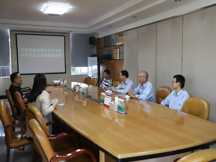 集團訊 11月26日,郁南縣職業(yè)技術學校領導一行蒞臨我司調(diào)研,萬事泰集團人力資源中心副總監(jiān)趙帆、企業(yè)文化部副經(jīng)理歐淑慧等集團領導陪同調(diào)研。