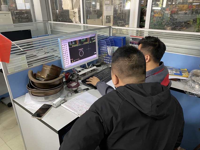經(jīng)過工程部辦公室,傳來一陣教學(xué)的聲音:“模型這里分開標(biāo)數(shù),這些數(shù)據(jù)代表......”走進(jìn)一看,是一對師徒正在描繪著圖紙,交流著CAD操作技術(shù)。師傅陳偉強(qiáng)用高標(biāo)準(zhǔn)、嚴(yán)要求的原則教導(dǎo)徒弟,言傳身教地帶領(lǐng)徒弟在萬事泰一步步前進(jìn)。