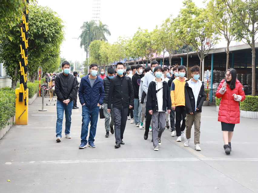 學(xué)校領(lǐng)導(dǎo)及學(xué)生一行先后參觀了自動化生產(chǎn)線、品檢中心、員工宿舍及飯?zhí)茫敿毩私饬巳f事泰生產(chǎn)經(jīng)營、產(chǎn)品質(zhì)量管控及員工生活區(qū)情況。