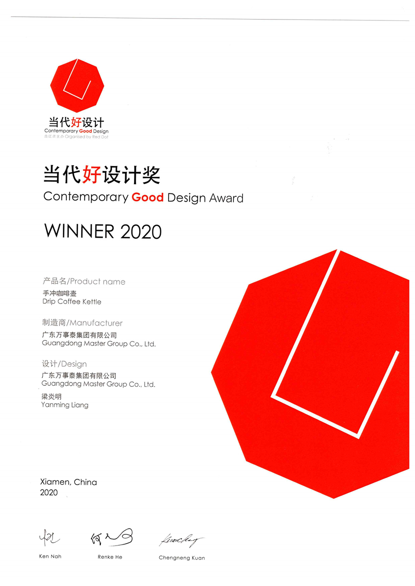 近日,2020年當(dāng)代好設(shè)計(jì)獎(jiǎng)評(píng)選結(jié)果揭曉,萬(wàn)事泰集團(tuán)水平系列鍋具、手沖咖啡壺因卓越的創(chuàng)新設(shè)計(jì)同時(shí)榮獲“2020年當(dāng)代好設(shè)計(jì)獎(jiǎng)”。此次脫穎而出的萬(wàn)事泰兩大產(chǎn)品被授予榮譽(yù),是對(duì)萬(wàn)事泰集團(tuán)杰出的設(shè)計(jì)成就最大的肯定。