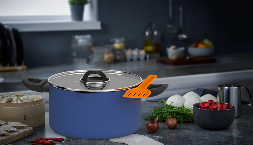 本次獲獎(jiǎng)的水平系列鍋具去繁從簡(jiǎn),實(shí)用至上,兼顧簡(jiǎn)約設(shè)計(jì)。采用鋁制鍋身,加熱速度快,大大縮減烹飪時(shí)間,提高烹飪效率及減少燃料的使用。蓋耳做了特殊的可折疊結(jié)構(gòu)設(shè)計(jì),配合下沉式玻璃蓋進(jìn)行裝備,使得整套鍋具完美地實(shí)現(xiàn)了鍋蓋可平放堆疊的功能。一個(gè)套裝,6種玩法,集煎煮燜燉炸多種功能,帶給烹飪者更多的烹飪樂(lè)趣。