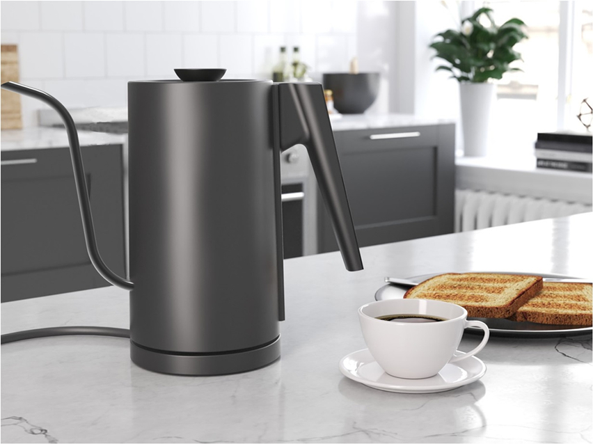 同獲殊榮的手沖咖啡壺新穎獨(dú)特、色彩多樣,流暢的線條感設(shè)計(jì)搭配亞光外色更顯典雅,如高雅端莊的“貴婦”?!笆譀_咖啡壺+智能煮水壺”的一體化設(shè)計(jì),智能化的精準(zhǔn)控溫與保溫,讓咖啡粉能更均勻地接受同一種溫度的萃取。從功能、材質(zhì)與整體設(shè)計(jì)上不斷突破和創(chuàng)新的手沖咖啡壺,不僅節(jié)約沖泡咖啡的時(shí)間,還讓咖啡品質(zhì)更有保證。