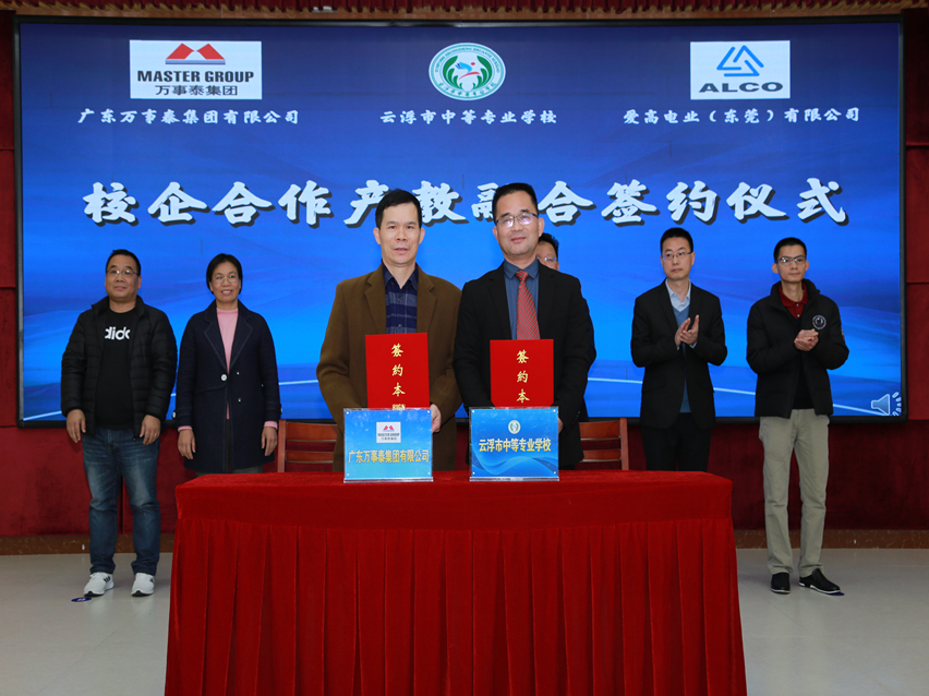集團訊 12月23日,萬事泰集團與云浮市中等專業(yè)學(xué)校隆重舉行了校企合作簽約儀式。萬事泰集團人力資源中心副總監(jiān)趙帆、行政部經(jīng)理陳永錦、云浮市中等專業(yè)學(xué)校領(lǐng)導(dǎo)及部分師生代表參加了此次簽約儀式。儀式由云浮市中等專業(yè)學(xué)校黨委副書記朱成豹主持。