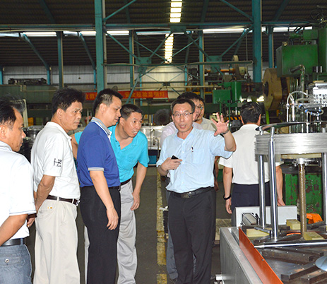 萬(wàn)事泰集團(tuán)常務(wù)副總裁劉炳耀等集團(tuán)領(lǐng)導(dǎo)陪同驗(yàn)收專家組一行先后來(lái)到技術(shù)中心、沖壓車間、產(chǎn)品檢測(cè)中心以及成品展示室考察創(chuàng)新能力平臺(tái)建設(shè)情況,劉副總裁在一旁為專家組成員詳細(xì)介紹萬(wàn)事泰的建設(shè)成果。