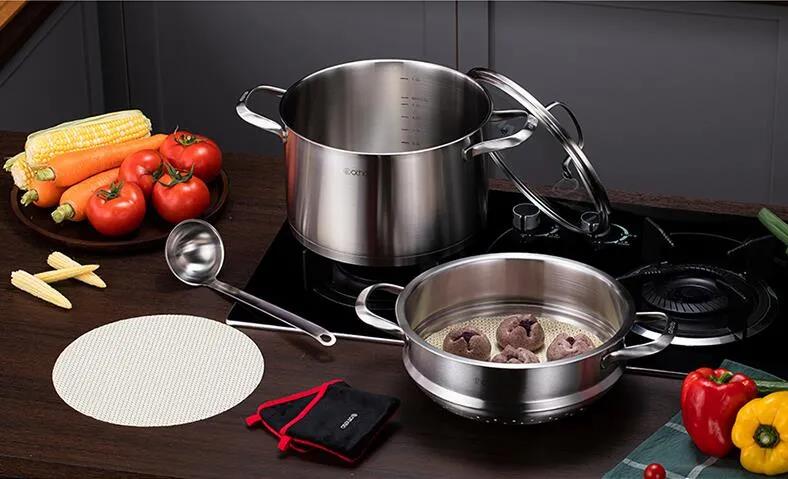 嚴(yán)選18/10不銹鋼原材,健康無涂層,耐氧化抗腐蝕,經(jīng)久耐用。加大水位刻度清晰,方便掌握水量。拉絲拋光工藝,耐污易潔。蒸煮同時(shí)進(jìn)行,一鍋多用不串味滿足一家使用。受熱更均勻,多爐灶通用 。