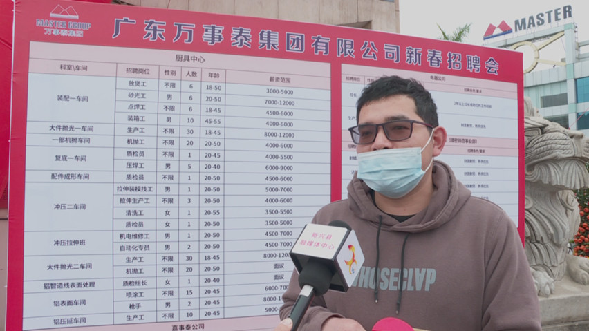 區(qū)冠文 廣東萬(wàn)事泰集團(tuán)人力資源部主管:應(yīng)聘者可到招聘攤位進(jìn)行咨詢(xún),尋找合適的崗位,在工作人員的指導(dǎo)下填寫(xiě)完整應(yīng)聘履歷表后,由用人部門(mén)帶領(lǐng)應(yīng)聘者先觀察工作的環(huán)境以及工作內(nèi)容,得到應(yīng)聘者的認(rèn)可后,再進(jìn)行相關(guān)的面試流程,面試通過(guò)后只需要準(zhǔn)備入職資料即可馬上辦理入職手續(xù)。我們想借助本次招聘,告訴外出工作的同鄉(xiāng)們,遠(yuǎn)在他鄉(xiāng)漂泊不如留在當(dāng)?shù)匕l(fā)展,廣東萬(wàn)事泰集團(tuán)海量高薪職位等著各位同鄉(xiāng)們的到來(lái)。