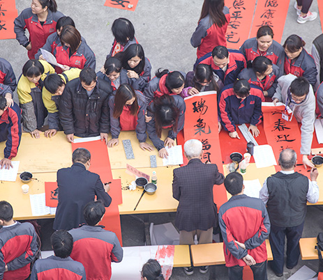 從上午10點(diǎn)鐘開(kāi)始至下午13:30分,書(shū)法家們沒(méi)有片刻休息,水也沒(méi)有喝上一口,歷時(shí)三個(gè)多小時(shí),現(xiàn)場(chǎng)揮毫潑墨,飽含激情為員工書(shū)寫(xiě)了近五百多幅春聯(lián)。