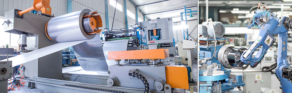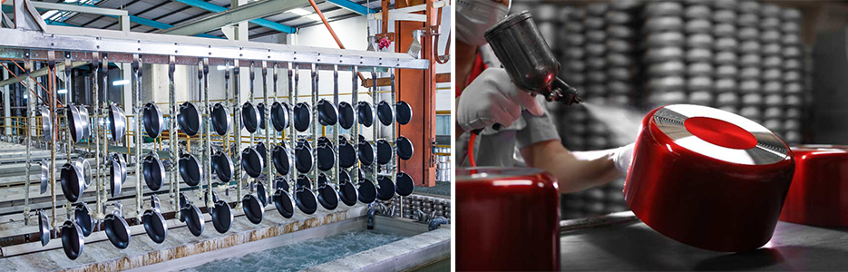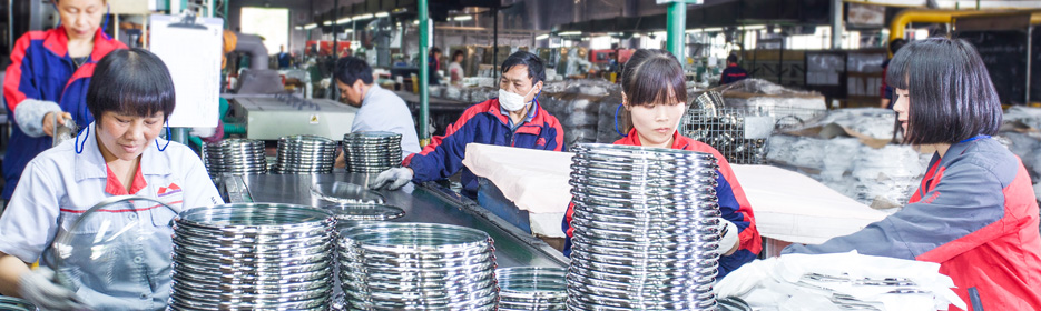 集團(tuán)擁有先進(jìn)的大規(guī)模生產(chǎn)基地,屬下工廠占地23萬余平方米, 標(biāo)準(zhǔn)廠房面積15萬多平方米,擁有自動(dòng)/半自動(dòng)生產(chǎn)線 20 余條、各類先進(jìn)機(jī)械設(shè)備達(dá) 2000 多臺(tái)(套),主要生產(chǎn)設(shè)備和質(zhì)量檢測設(shè)備均為進(jìn)口或采用國內(nèi)一流設(shè)備,關(guān)鍵技術(shù)從歐洲、日韓等國引進(jìn),設(shè)備 技術(shù)水平居于國內(nèi)行業(yè)領(lǐng)先。集團(tuán)生產(chǎn)能力位居行業(yè)前列,年可生產(chǎn)各種規(guī)格的不銹鋼餐廚炊具、鋁制餐廚鍋具達(dá)2800萬只、鋼化玻璃蓋1200萬只,小家電200萬只,不銹鋼和鋁制品年加工能力超過36000 噸,年可出口貨值超過 3500 個(gè)標(biāo)準(zhǔn)貨柜,能滿足世界各地客 戶大規(guī)模的訂單需要。